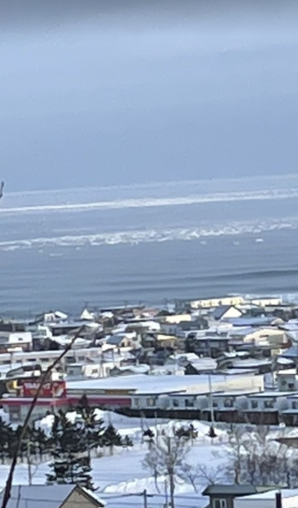 諦めの悪い俺は保険で調べてた、流氷を高台から見れる公園から、ハッキリ肉眼で見てきました。実際に見ると感動します!