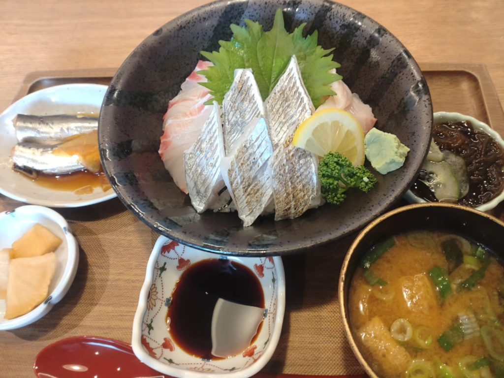 野間埼灯台からのランチは、評価点がヤバいくらいの人気店で海鮮丼を。