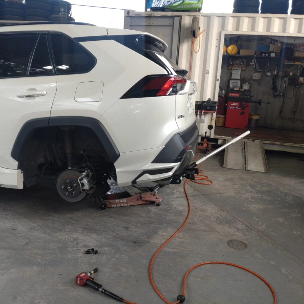 昼からは、去年で限界を迎えたスタッドレスタイヤをトライアングルさんで、履き替えてもらった。