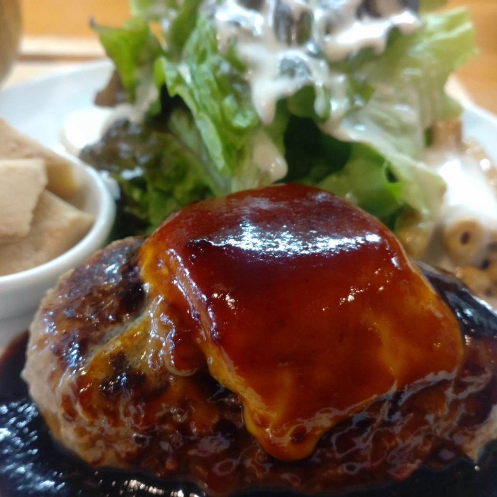 昨日の月曜日は、朝から堺で用事があったので、ランチは、あおみどりで、ハンバーグ!
