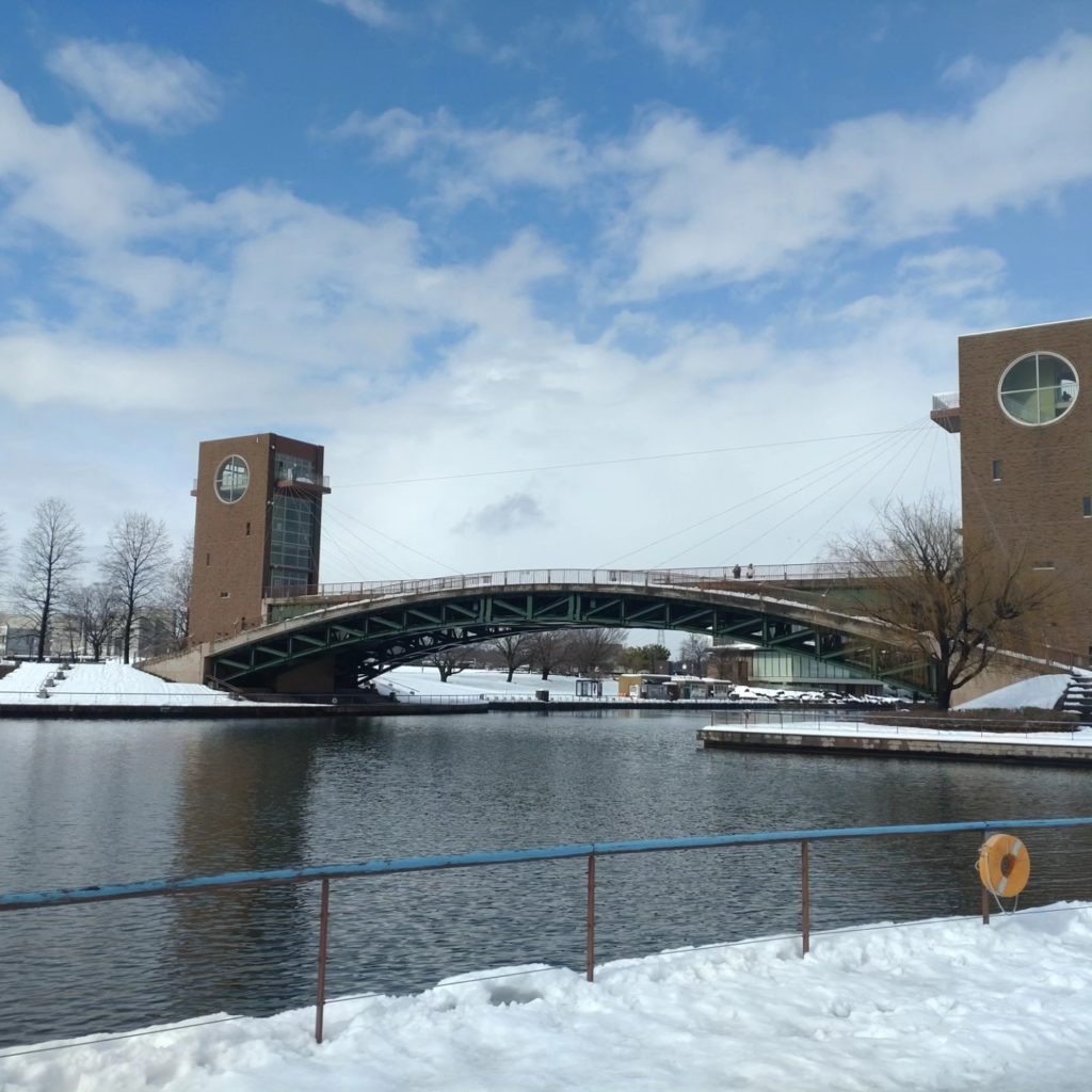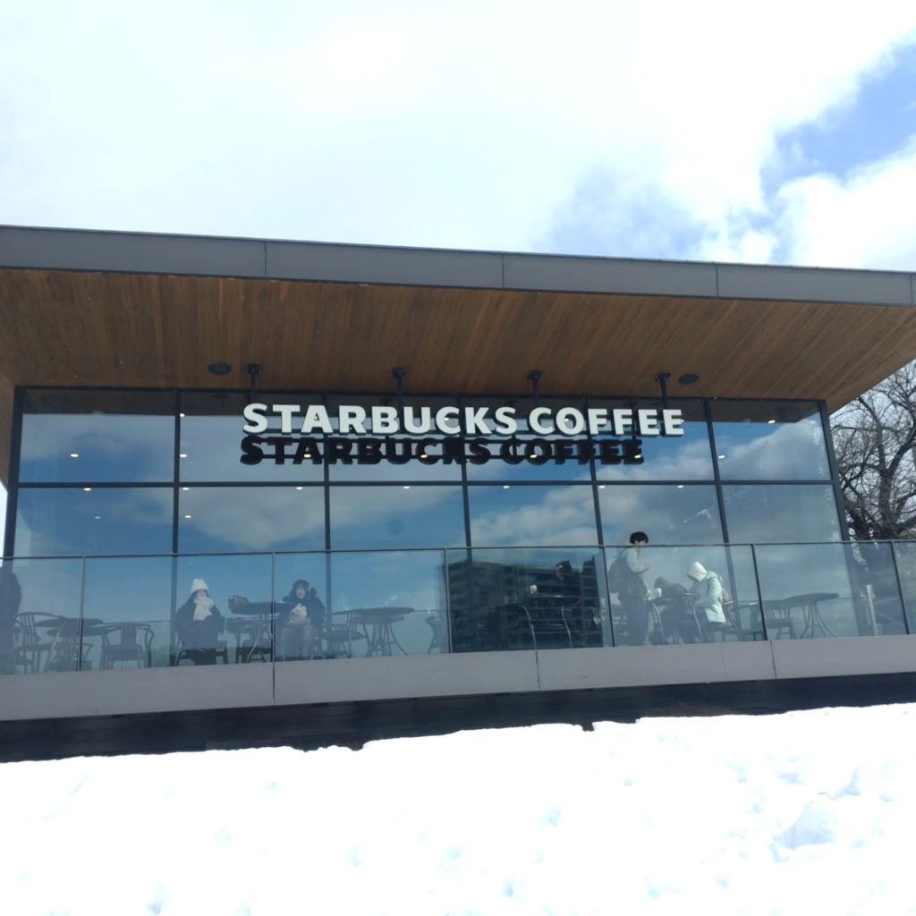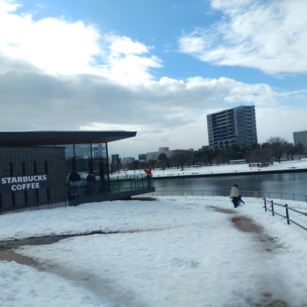 綺麗な雪景色を見ながら、まず配達を終わらせて、世界一綺麗なスタバで有名になったスタバのある運河&公園に。